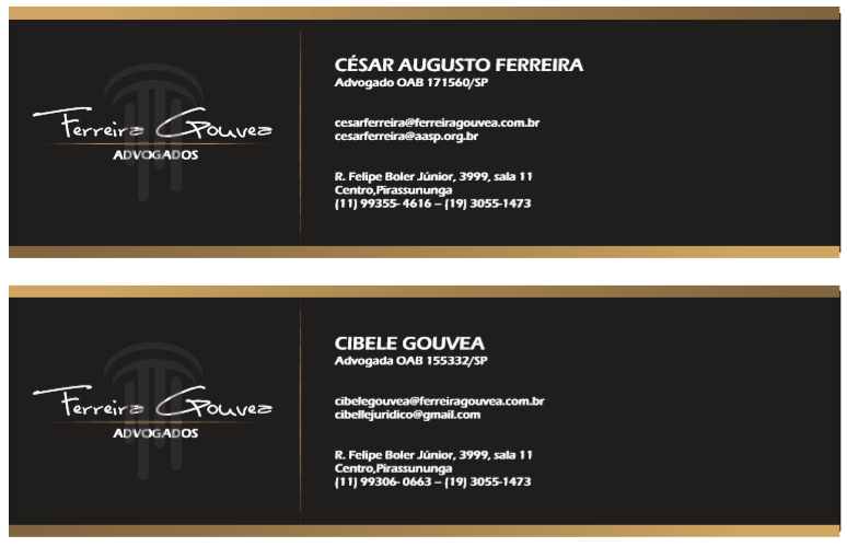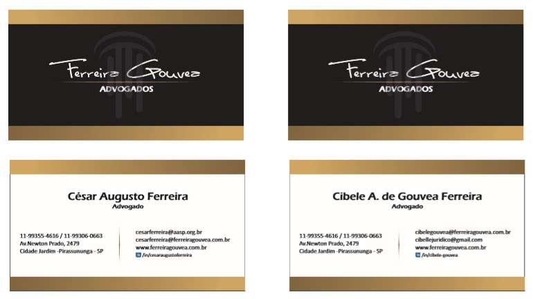 Desenvolvimento da logo marca e toda identidade visual do escritório de advocacia Ferreira Gouvea Advogados em Pirassununga.